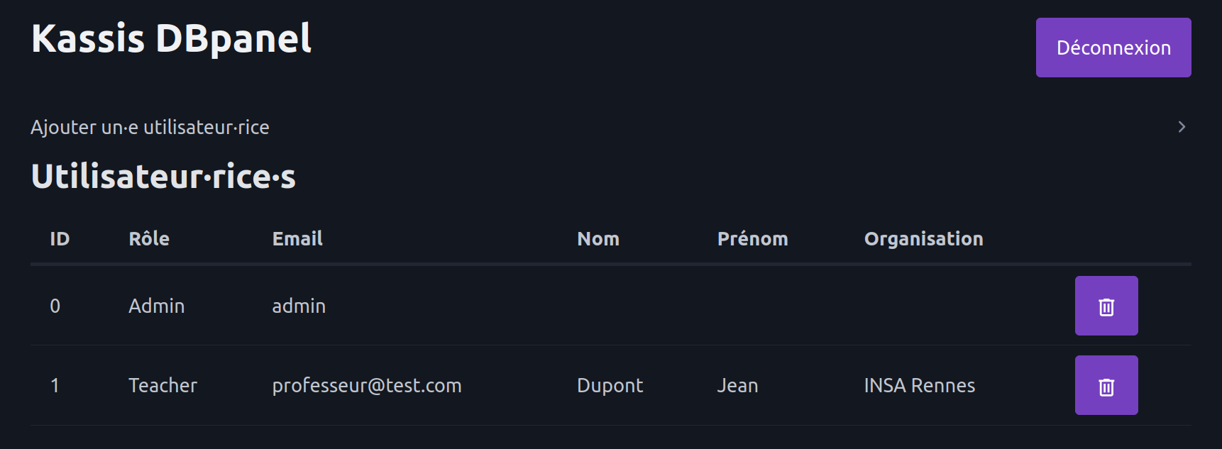 Nous avons donc ajouté un panneau d'administration du serveur, accessible via une interface web, qui permet de gérer simplement les comptes des professeurs.